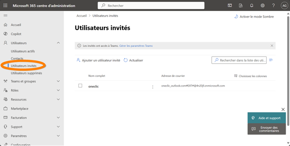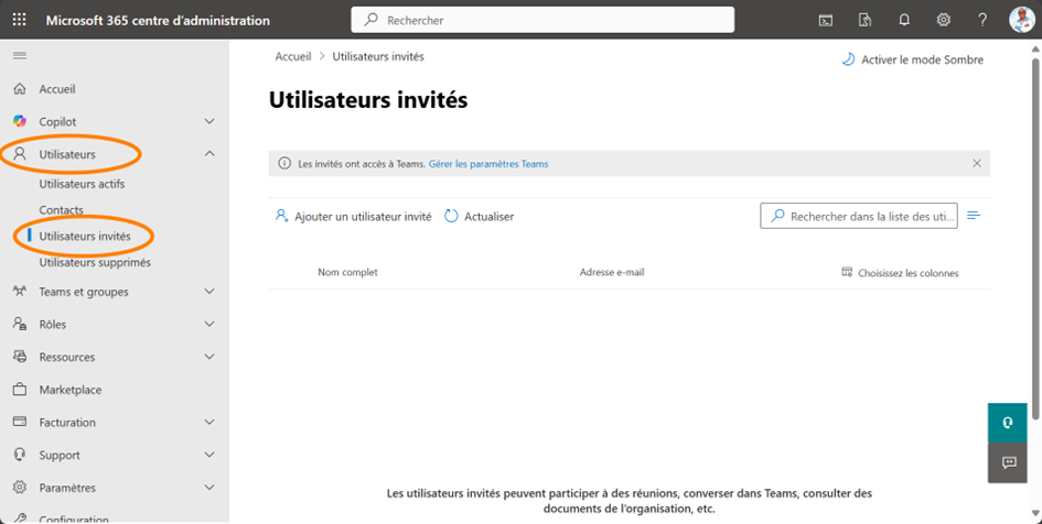 2. Dans Microsoft 365 centre d’administration, Utilisateurs invités