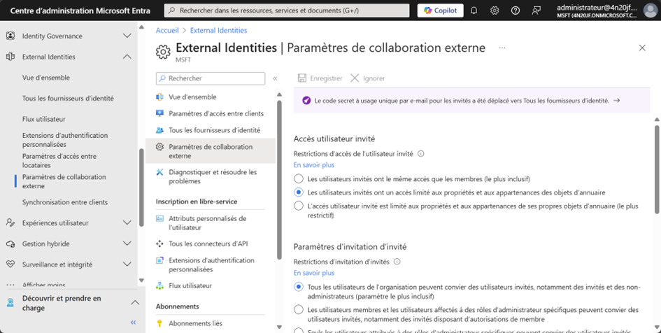 Cliquez sur External identities puis Paramètres de la collaboration externe
