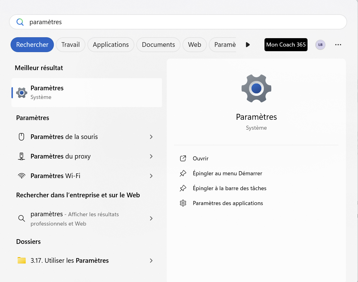 Pour commencer, cliquez sur le logo Windows en bas de votre écran, puis saissez Paramètres.
