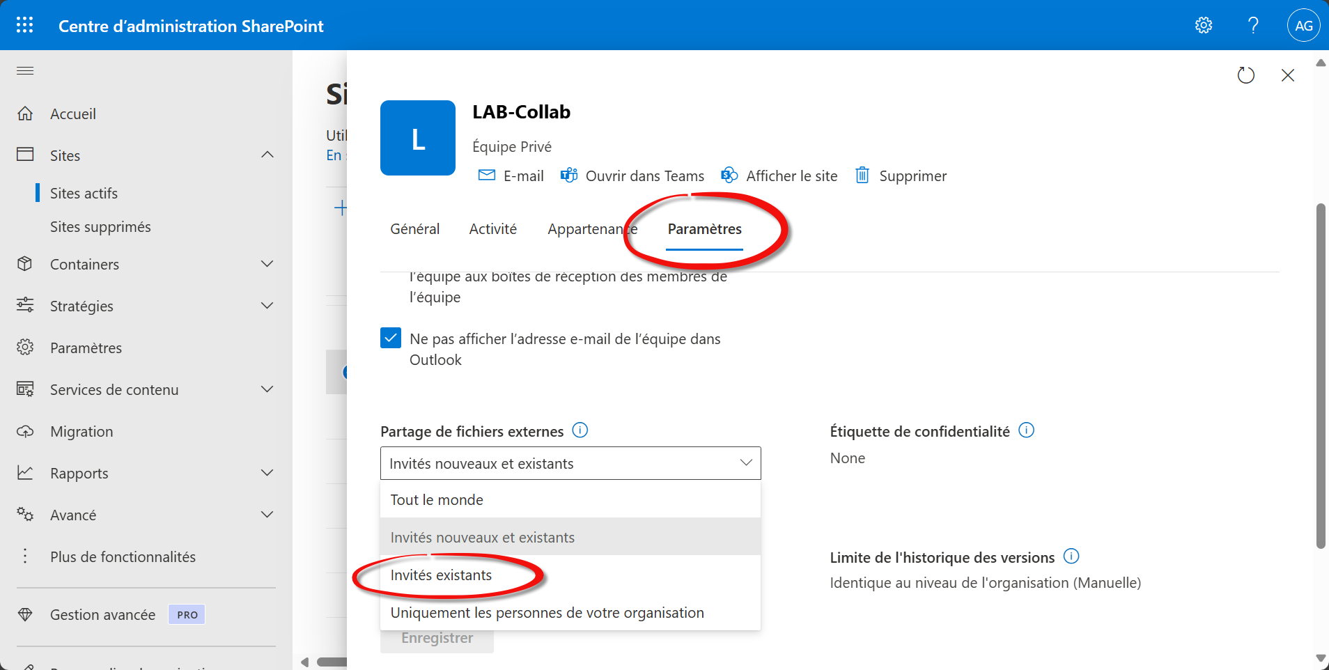 Durcir le partage au niveau des sites SharePoint