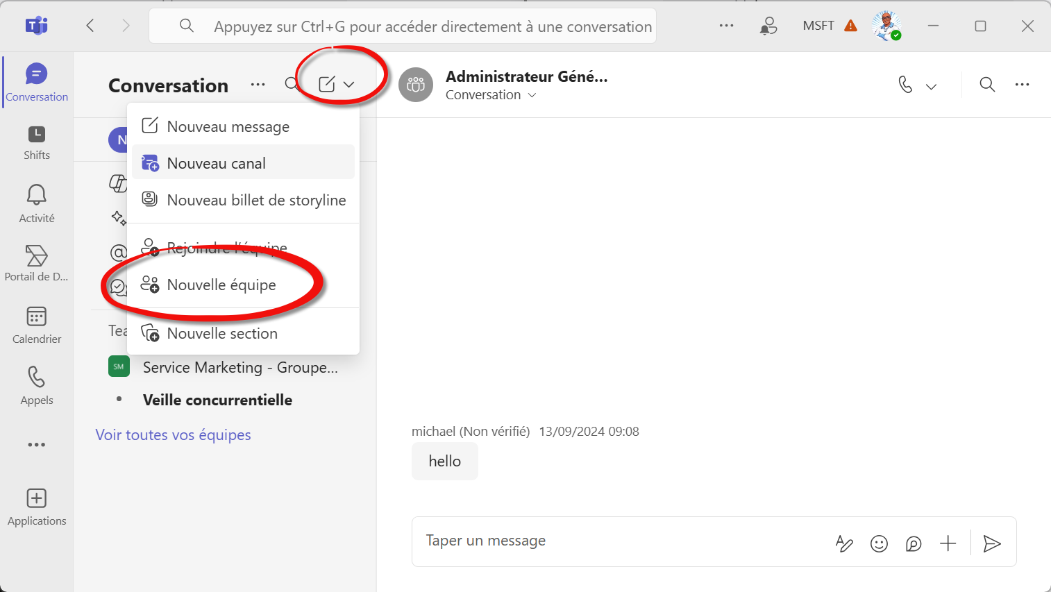Teams (client) > Teams > Nouvelle équipe
