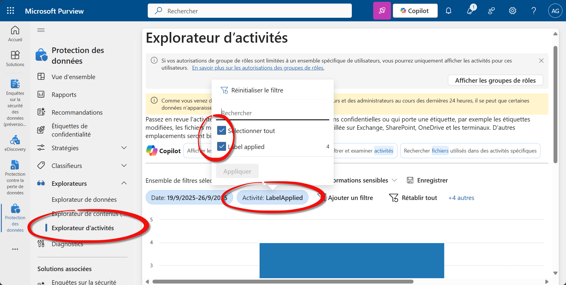 Purview > Protection des données > Explorateurs > Explorateur de contenus.