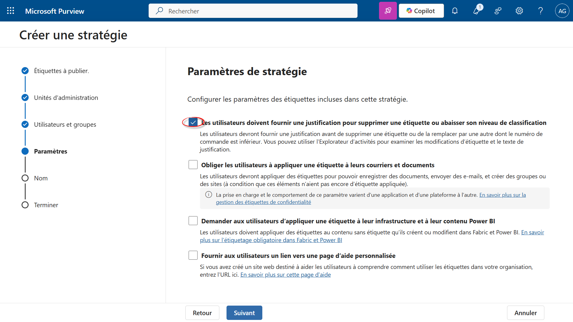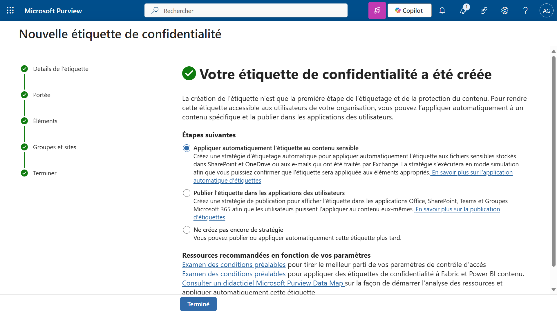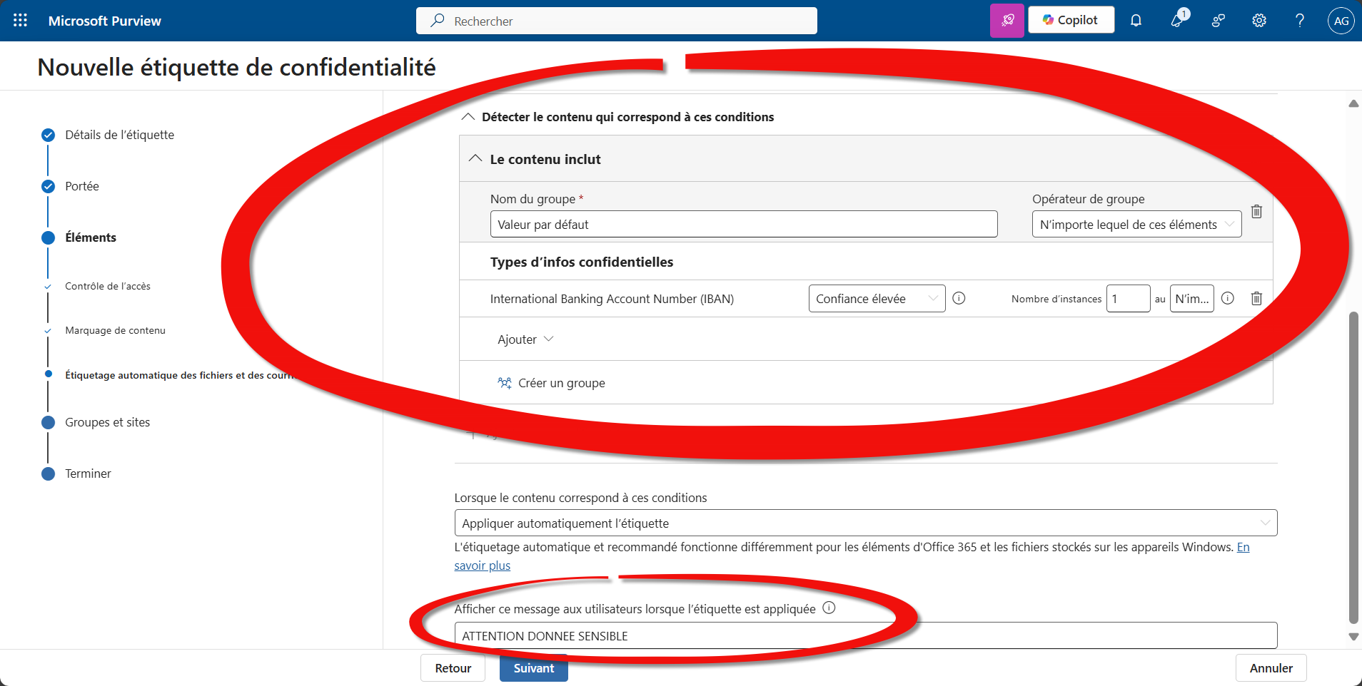 Cliquez sur Appliquer automatiquement l'étiquette au contenu sensible