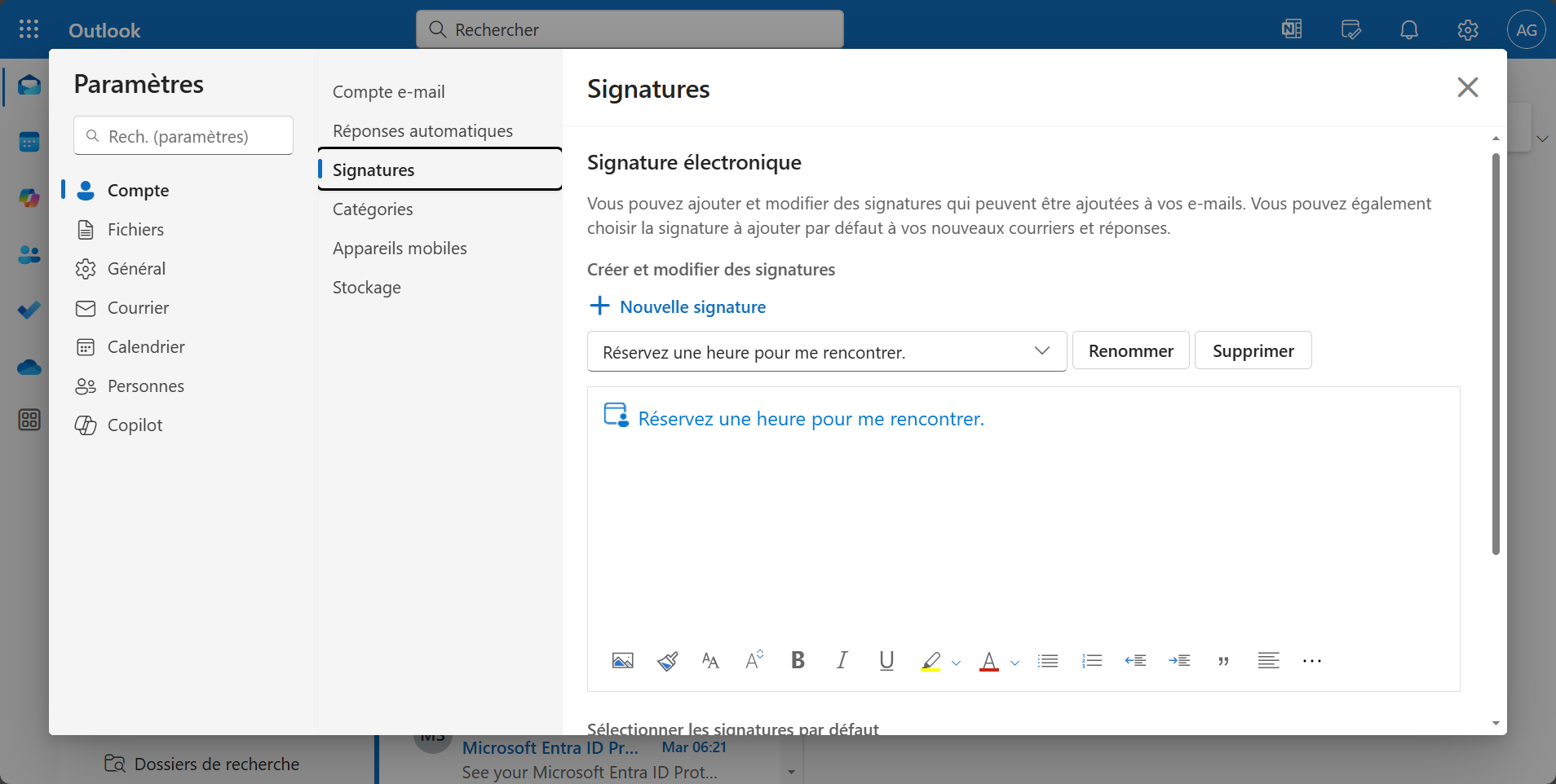 Cliquez sur lâicĂŽne â (ParamĂštres) â Comptes â Signature.