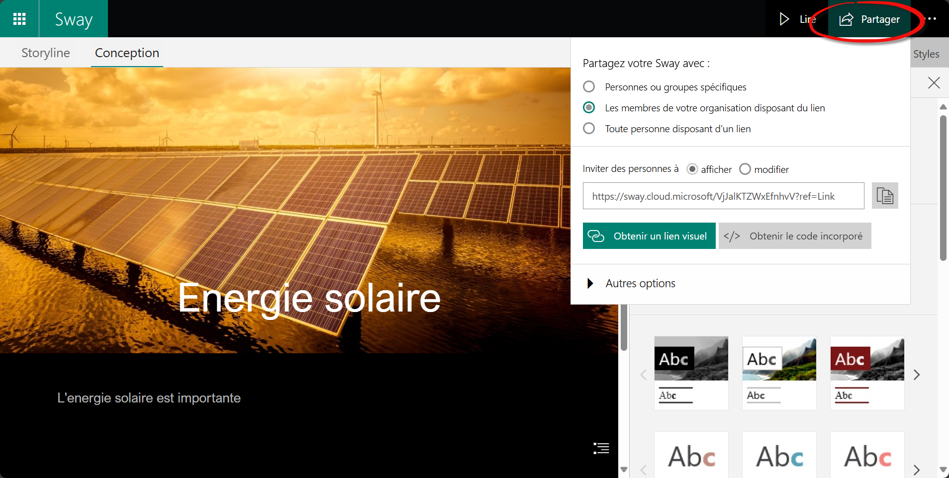 Créer et structurer une présentation Sway