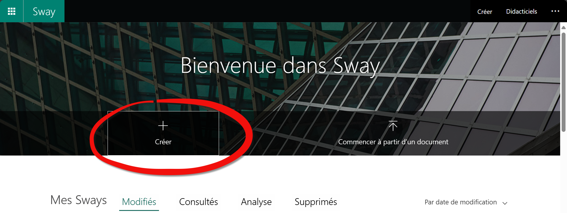 Connectez-vous à Office.com → Ouvrez Sway → Créer un nouveau Sway.